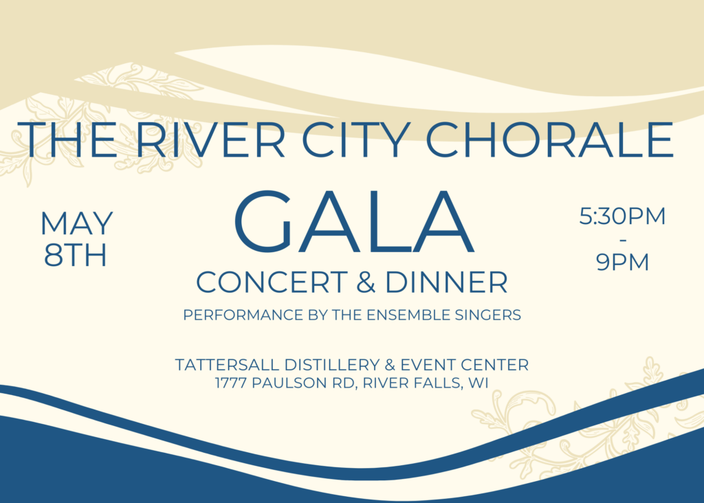 The River City Chorale is a musical organization based in Hudson, Wisconsin. The chorale was formed in 2009 and consists of a large non-auditioned Chorale and auditioned Ensemble Singers. Our choirs perform multiple concerts throughout the year round throughout Hudson, Wisconsin and Minnesota. Check out our upcoming performances.